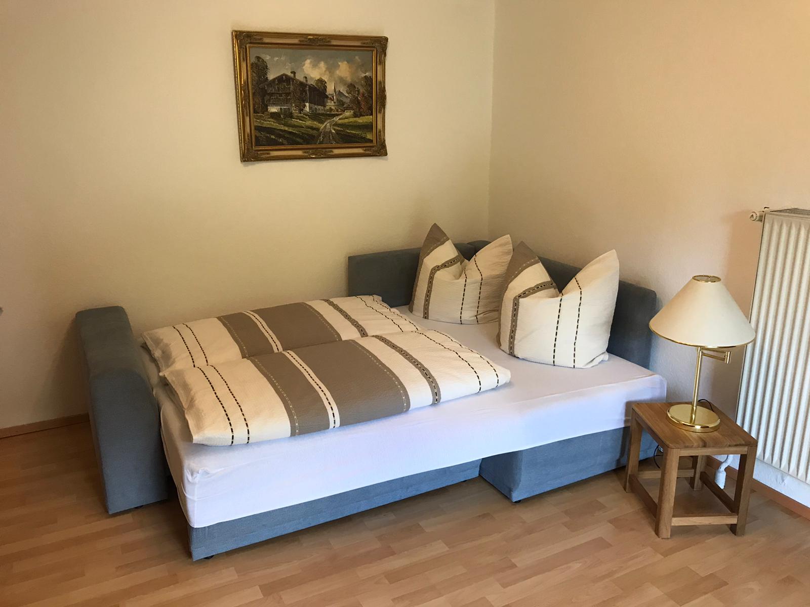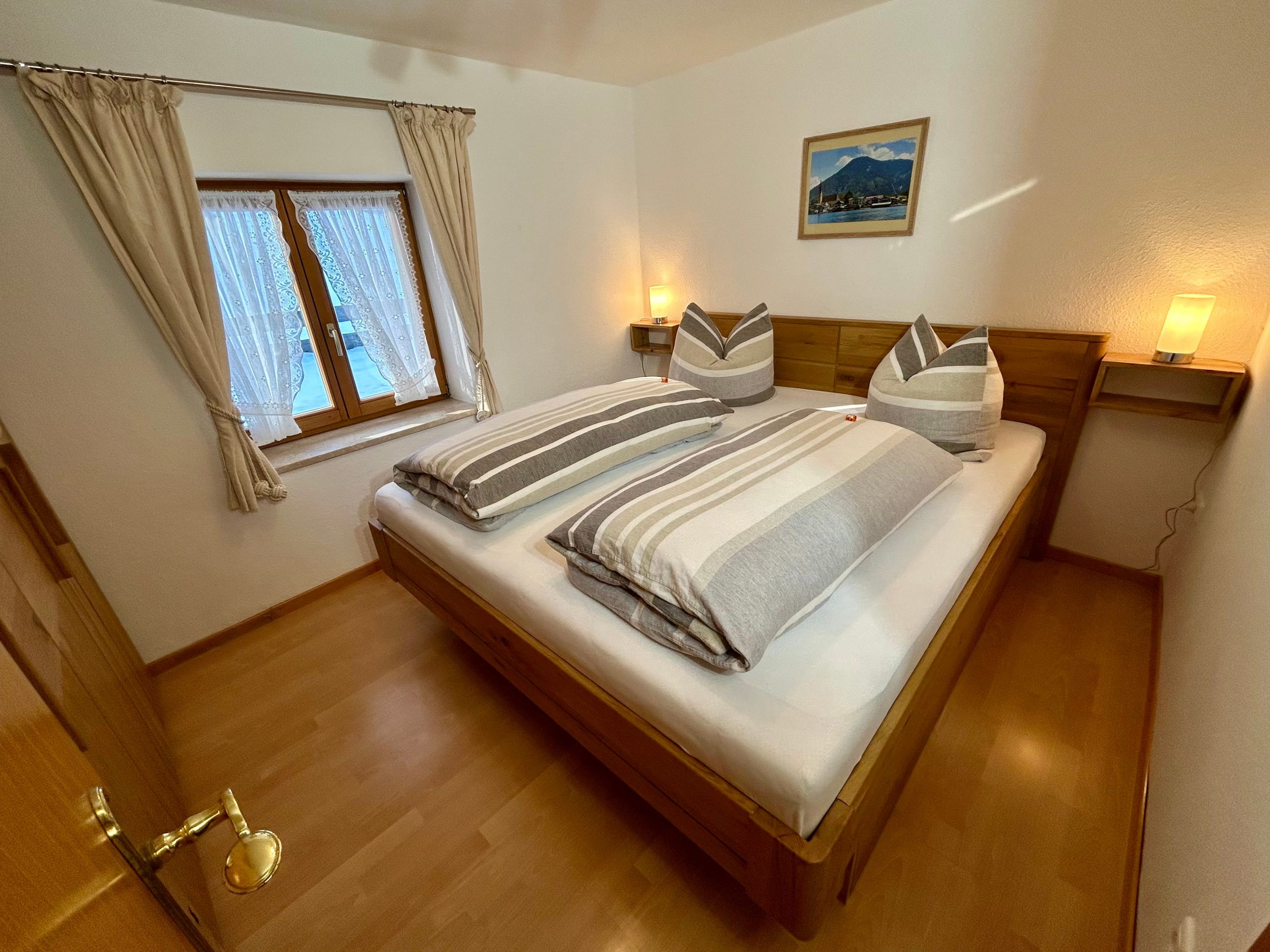 Für erholsame Nächte lässt sich das Schlafzimmer mit den Fensterläden vollständig abdunkeln. Bettwäsche ist selbstverständlich für Sie vorhanden.