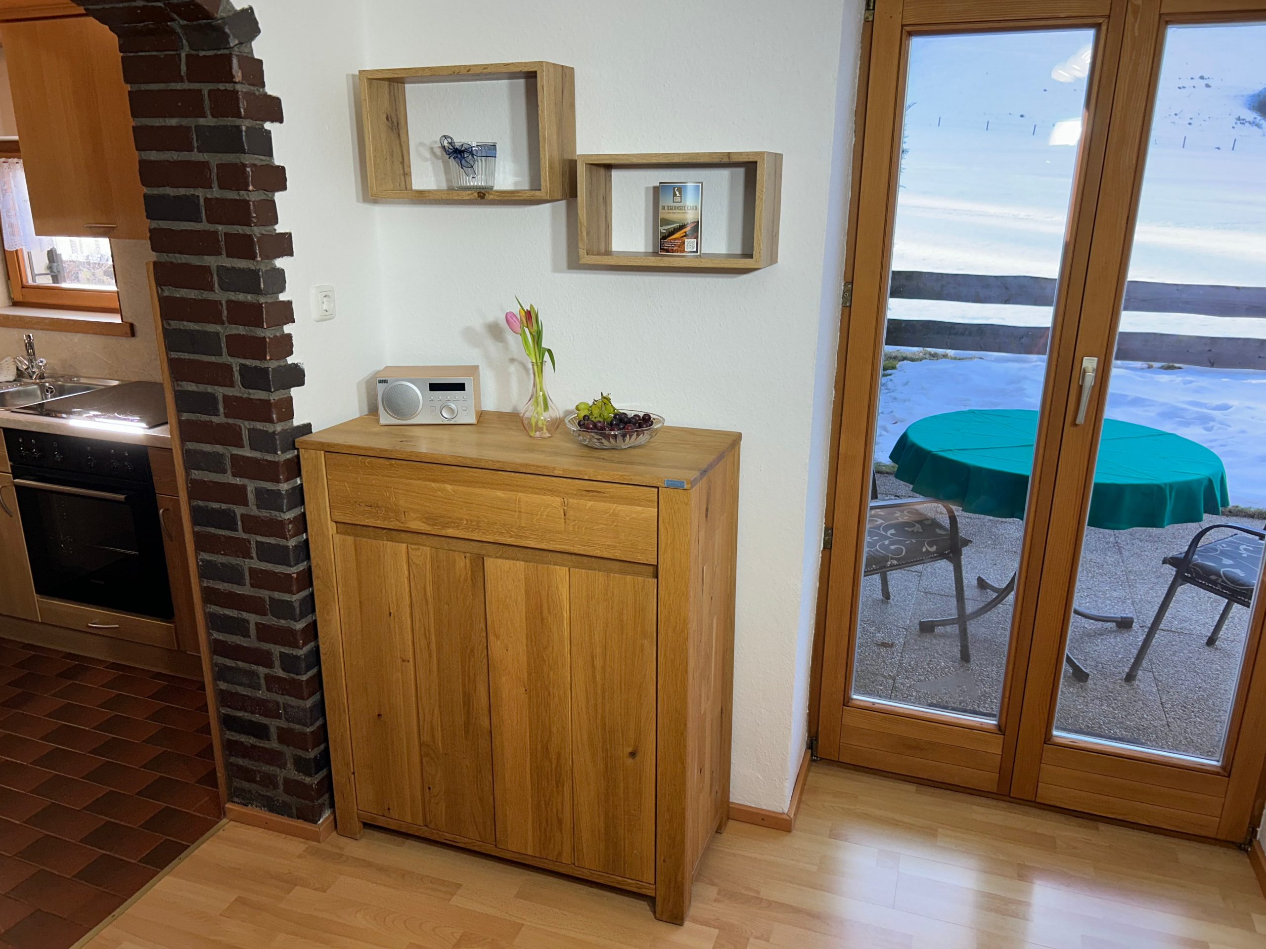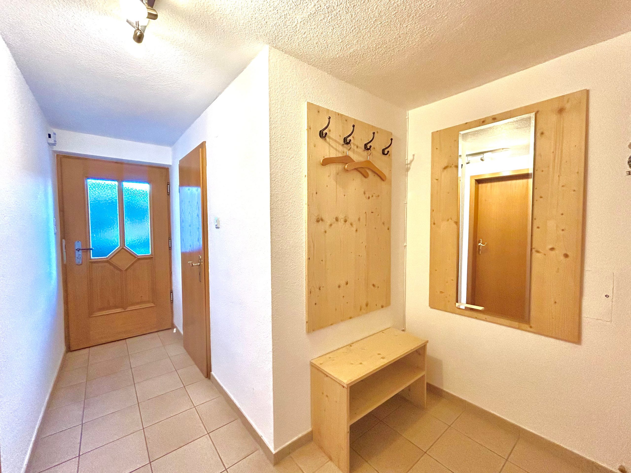 Der Flur bietet ausreichend Stauraum für Schuhe und Jacken. Dort befindet sich ebenfalls der Schlüssel zum Schuppen.