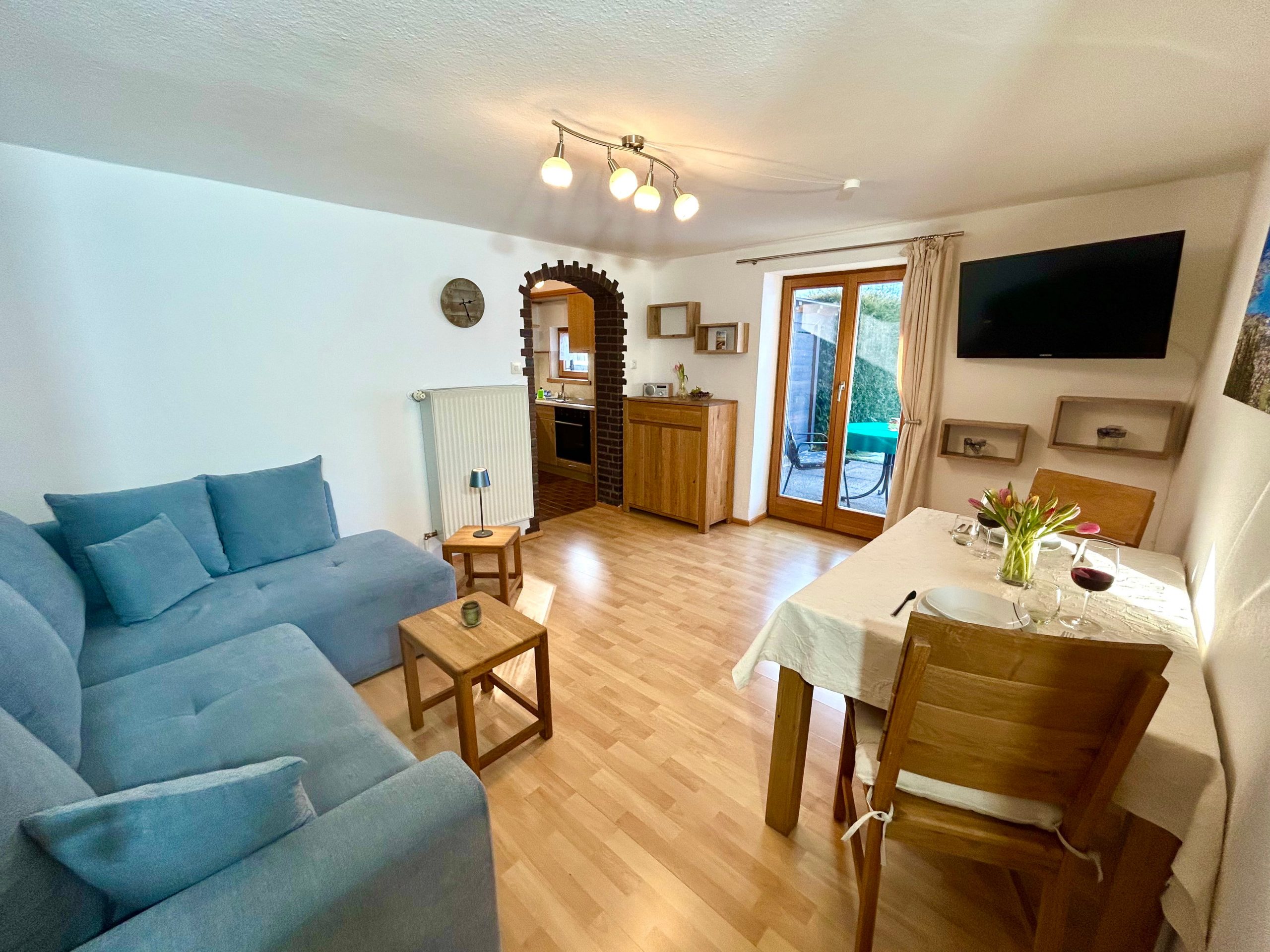 Genießen Sie von hier aus den direkten Zugang zu Ihrer privaten Terrasse mit Garten.